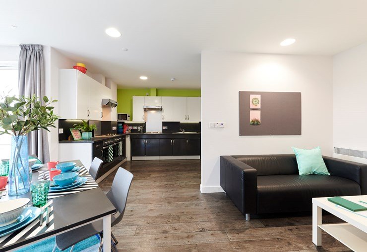 Students can book en-suite rooms within shared apartments, each with a private bathroom and shared kitchen.