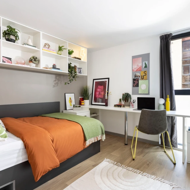Parkway Gate is a popular and modern student accommodation in Manchester, designed for students who want comfort, safety, and a central location. The building offers fully furnished en-suite rooms and shared flats that come with a cosy bed, study desk, storage space, and fast Wi-Fi.